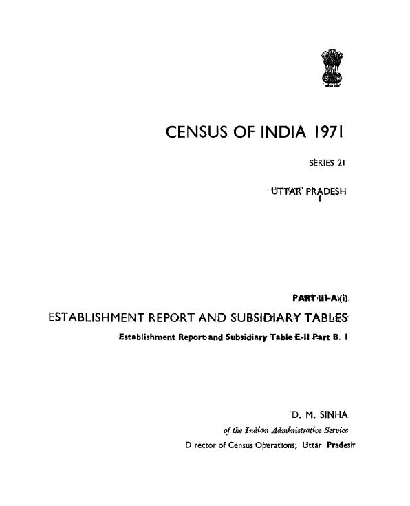 Establishment Report and Subsidiary Tables, Part III-A (i), Series-21, Uttar Pradesh - Census 1971