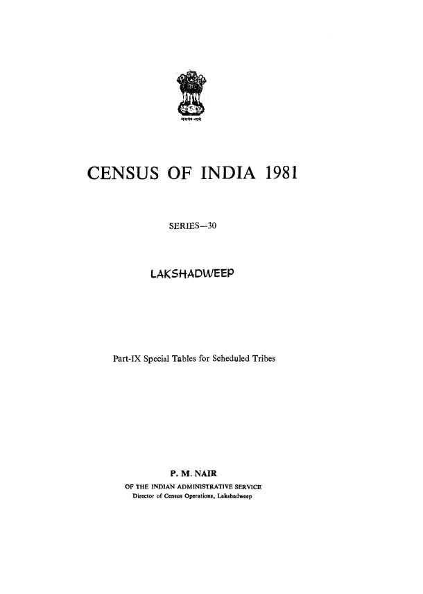 Special Tables for Scheduled Tribes, Part IX, Series-30 - Census 1981