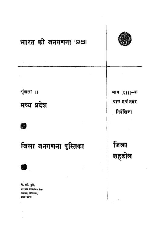 District Census Handbook, Shahdol, Part XIII-A, Series-11 - Census 1981