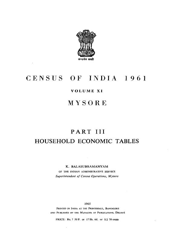 Household Economic Tables, Part III, Vol-XI - Census 1961