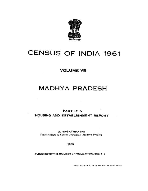 Housing and Establishment Report, Part IV-A, Vol-VIII - Census 1961