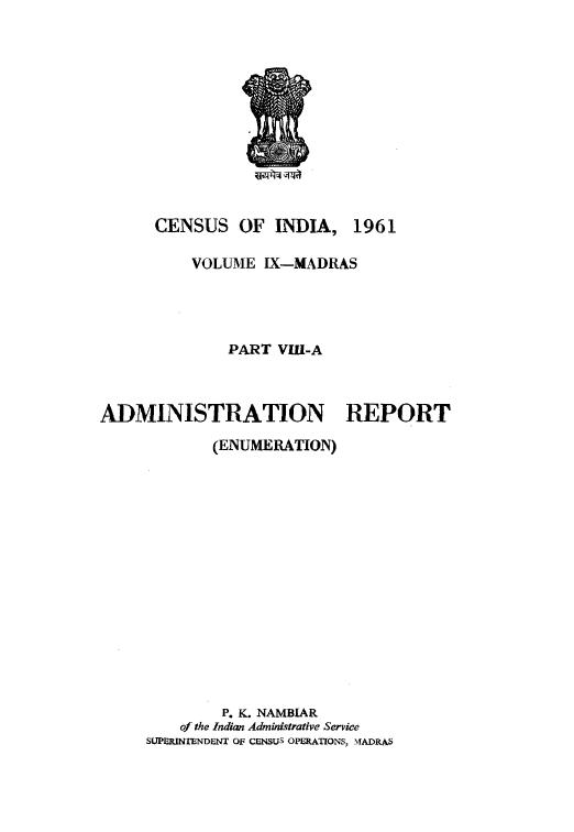 Madras Administration Report (Enumeration), Part VIII-A, Vol-IX - Census 1961
