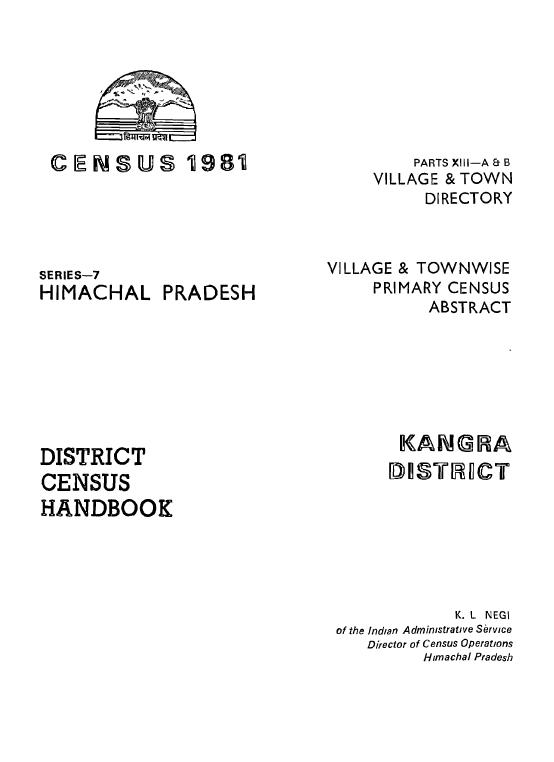 Village & Town wise Primary Census Abstract, Kangra, Parts-XIII- A & B, Series-7, Himachal Pradesh - Census 1981