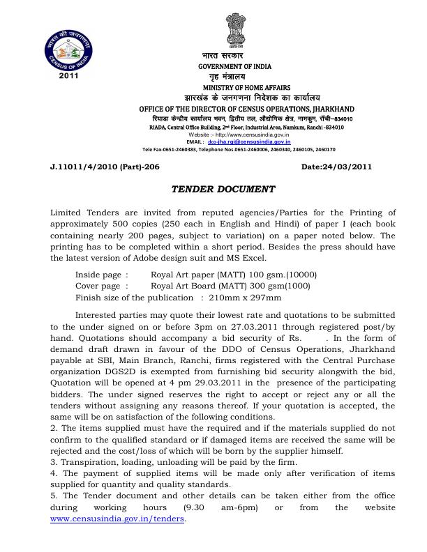 Printing of approximately 500 copies (250 each in English and Hindi) of paper I (each bookcontaining nearly 200 pages ( DCO- Jharkhand)