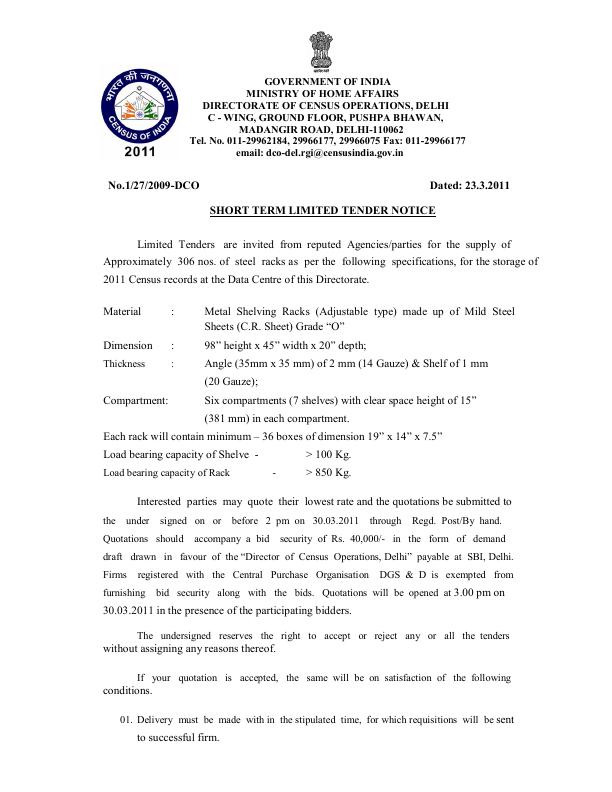 Supply of approximately 306 nos. of steel racks ( DCO - Delhi)