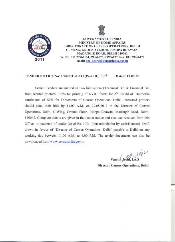 Tender for printing of KYR+ forms (DCO - Delhi)