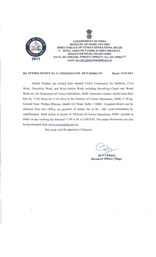 Re Tender for Partition, Civil Work, Electricity Work, and Work-Station Work including Revolving Chairs and Wood Work etc. [DCO - Delhi]