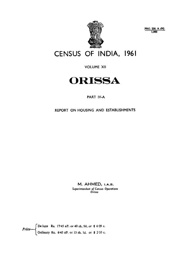 Report on Housing and Establishments, Part-IV-A, Volume-XII, Orissa - Census 1961
