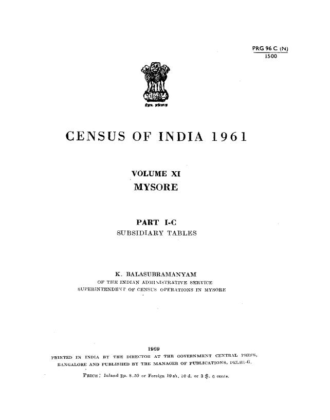 Subsidiary Tables, Part I-C, Vol-XI - Census 1961