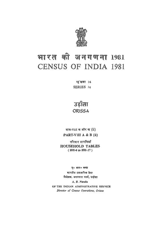 Household Tables, Part-VIII A & B (ii), Series-16, Orissa - Census 1981