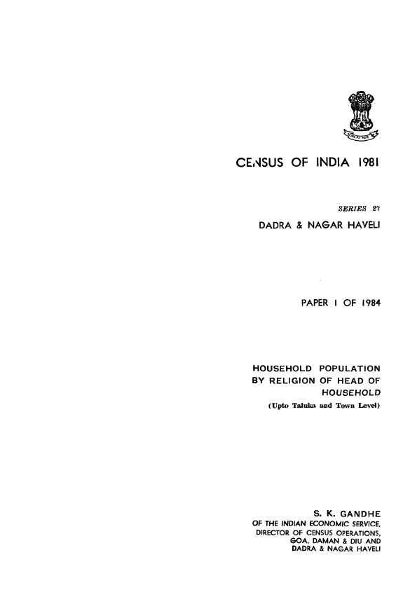 Household Population by Religion of Head of Household, Series-27 - Census 1981