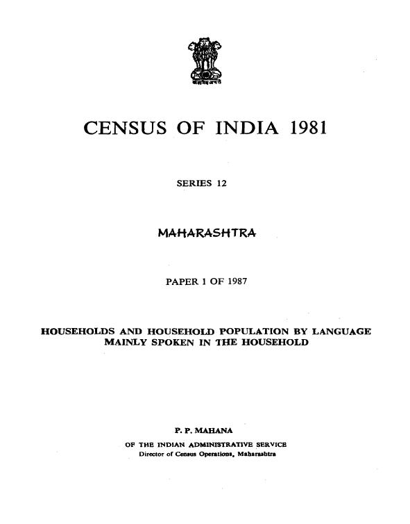Households and Household Population by Language Mainly Spoken in the Household, Series-12 - Census 1981
