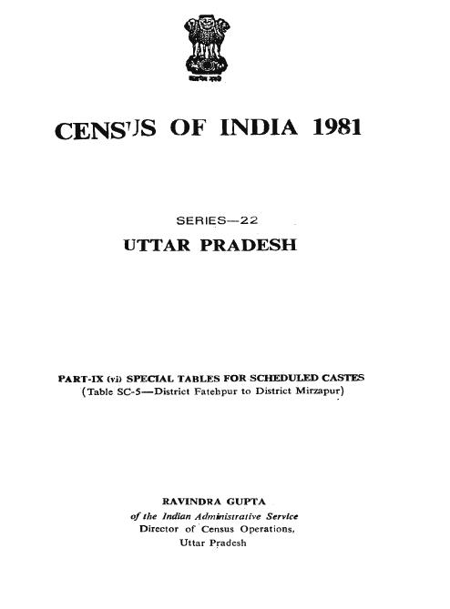 Special Tables for Scheduled Castes, Part-IX (vi), Series-22, Uttar Pradesh - Census 1981