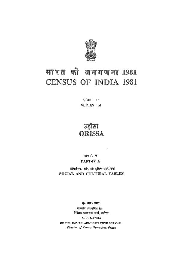 Social and Cultural Tables, Part-IV-A, Series-16, Orissa - Census 1981