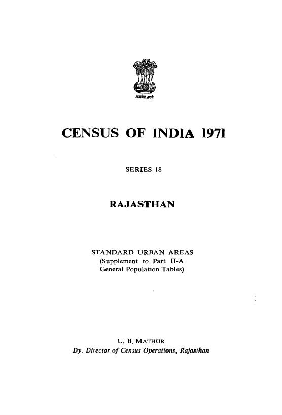 Standard Urban Areas, Part II-A,Series-18, Rajasthan - Census 1971