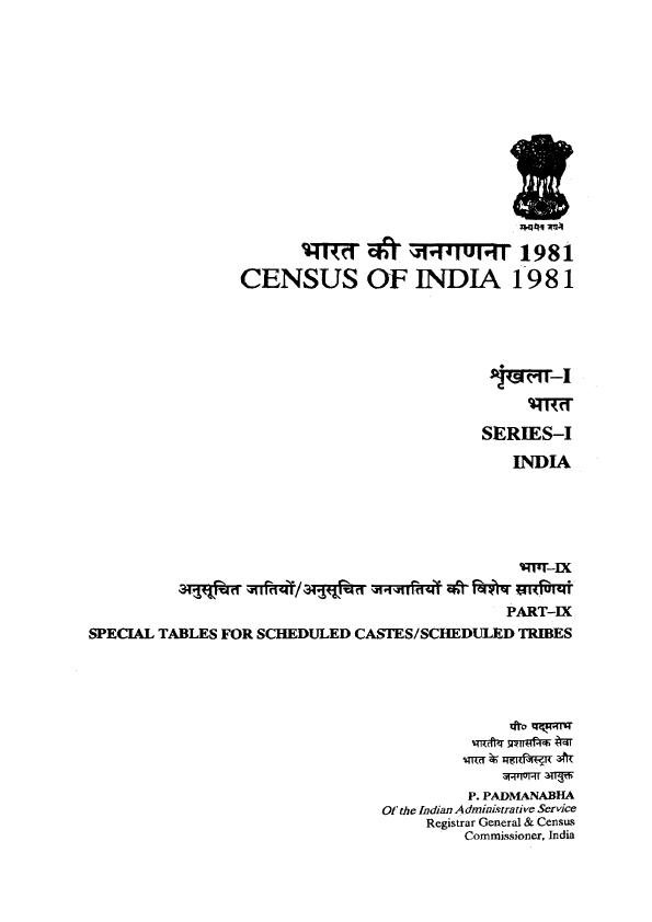 Special Tables for Scheduled Castes/Scheduled Tribes, Part-IX, Series-I, India - Census 1981