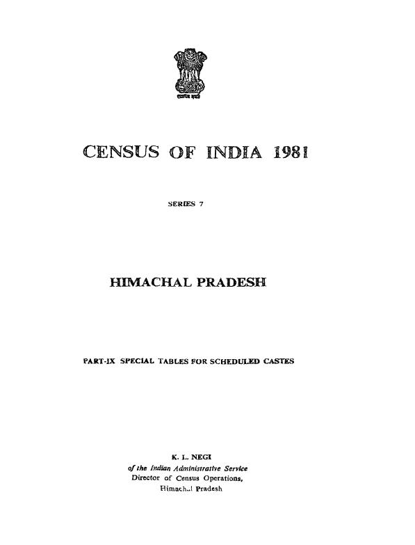 Special Tables for Scheduled Castes, Part-IX, Series-7, Himachal Pradesh - Census 1981