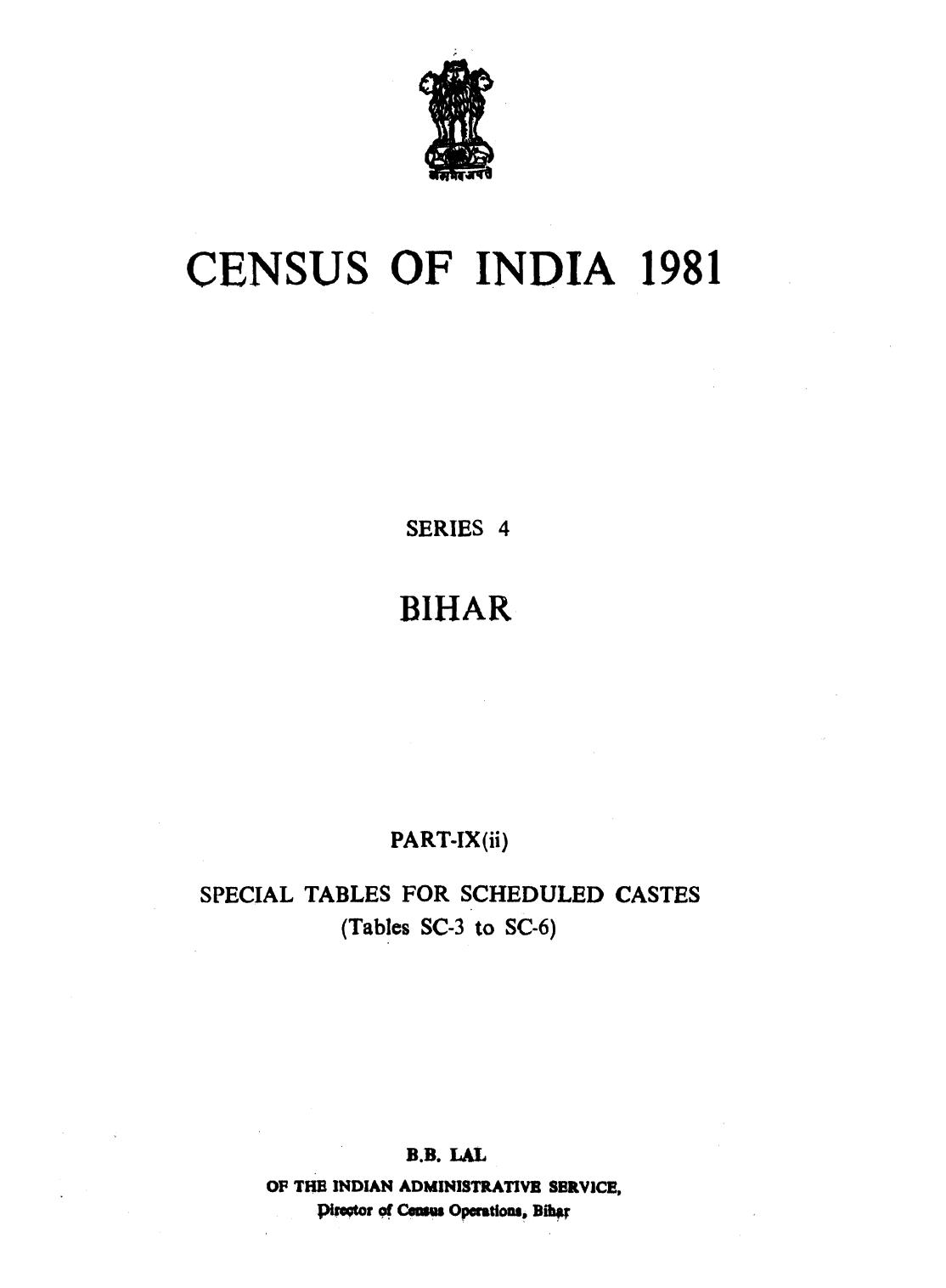 Special Tables for Scheduled Castes, Part-IX(ii), Series-4, Bihar - Census 1981