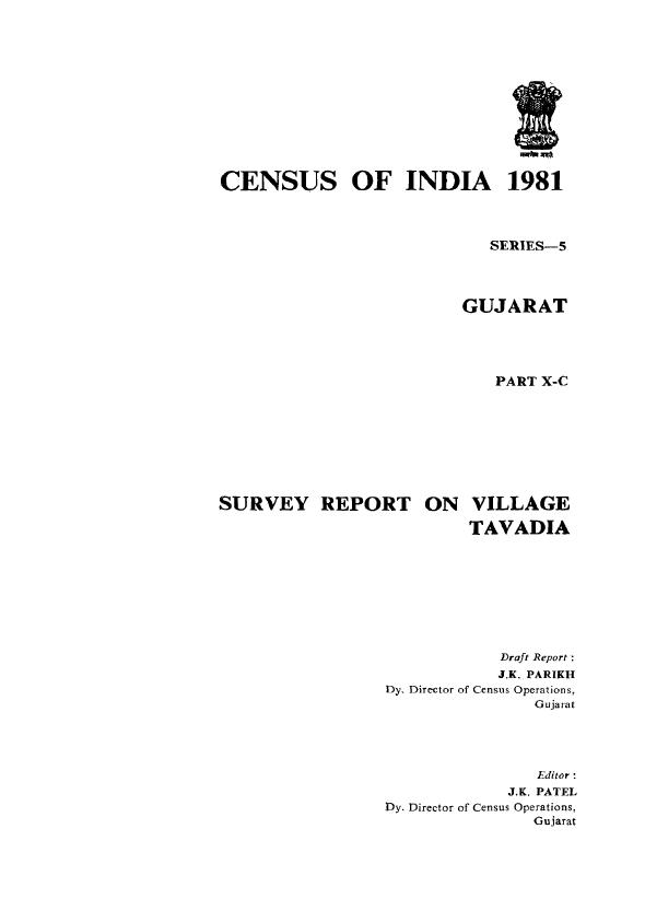 Survey Report on Village Tavadia, Part X-C, Series-5 - Census 1981