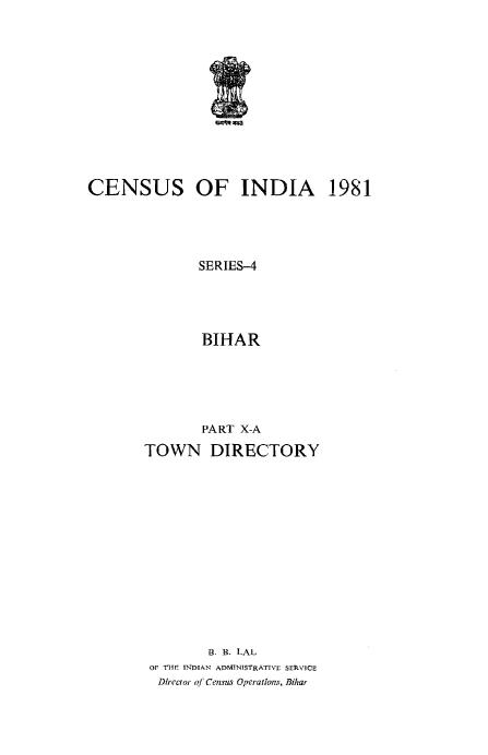 Town Directory, Part X-A, Series-4, Bihar - Census 1981