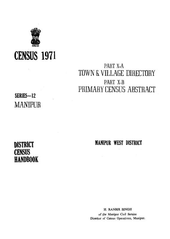 District Census Handbook, Manipur West, Part X-A B, Series-12, Manipur - Census 1971