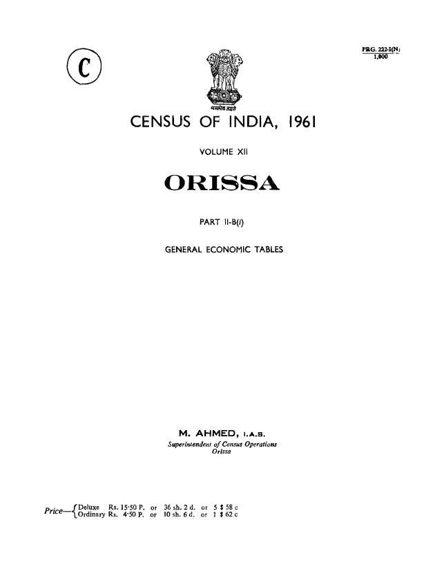 General Economic Tables, Part II-B(i), Volume-XII, Orissa - Census 1961