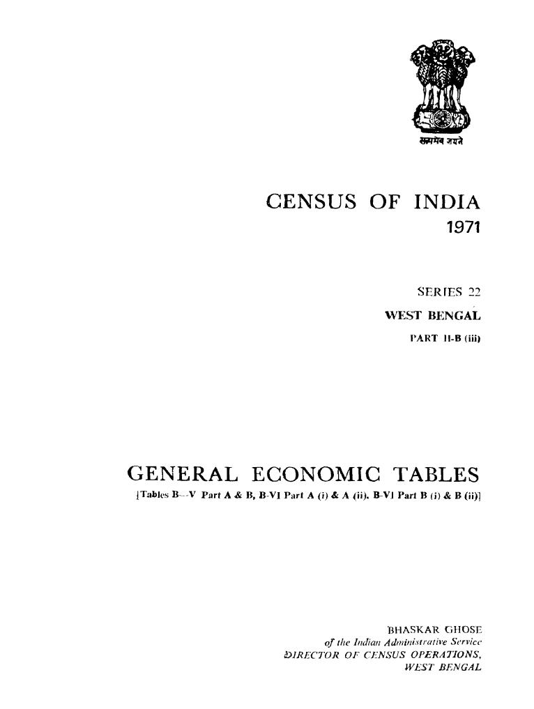 General Economic Tables, Part II-B (iii), Series-22, West Bengal - Census 1971