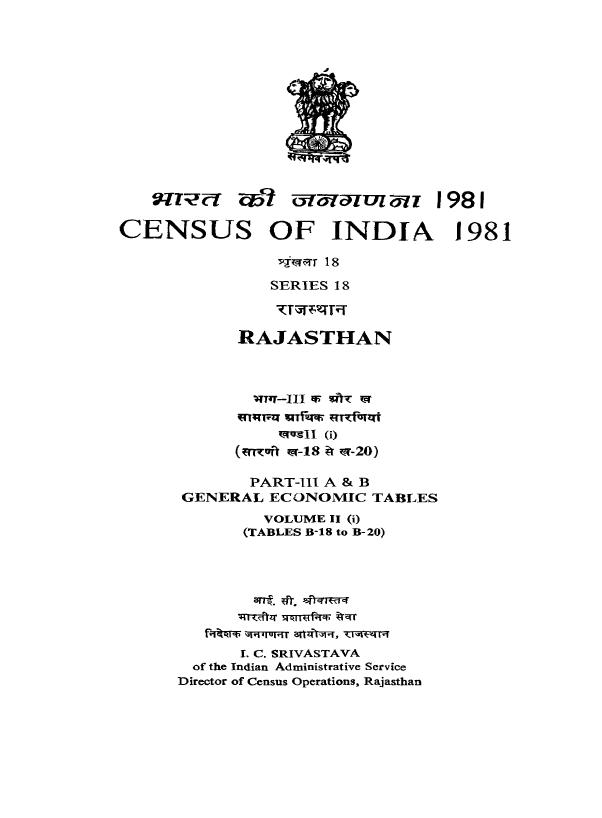 General Economic Tables, Part-II (i), Vol-II (i), Series-18, Rajasthan - Census 1981