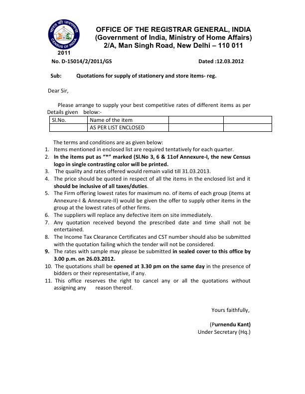 Quotations for supply of stationery and store items (ORGI - New Delhi)