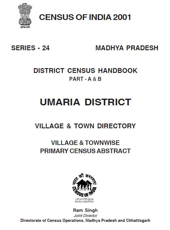 Census of India 2001 - Series 24 - Madhya Pradesh - District Census Handbook, Part A & B - Umaria