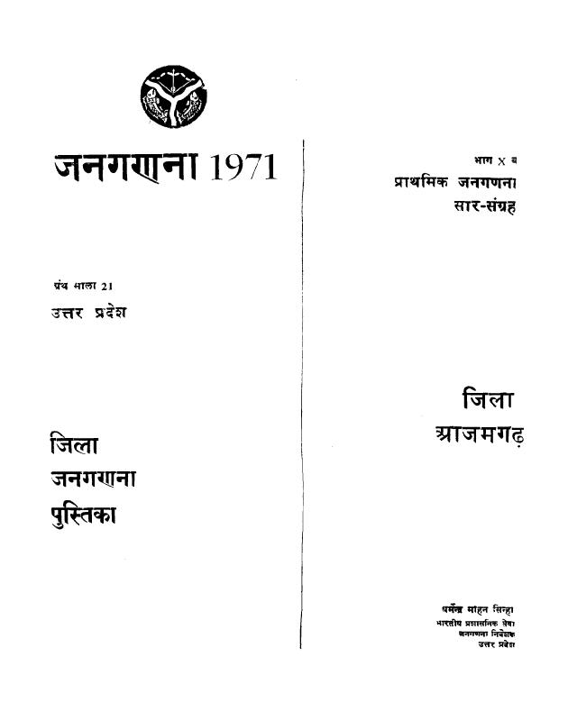 District Census Handbook, Aajmgrah, Part X-B, Series-22, Uttar Pradesh - Census 1971