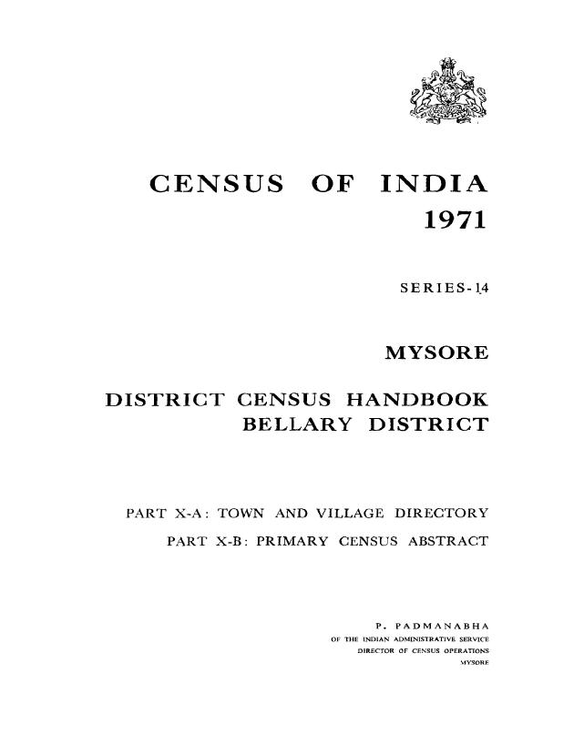 District Census Handbook, Bellary, Part X-A, B, Series-14 - Census 1971