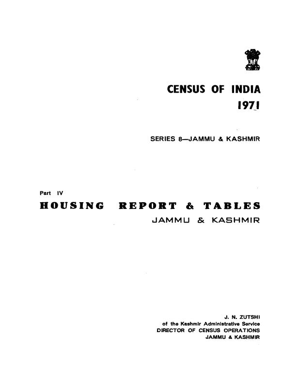 Housing Report & Tables, Part IV, Series-8 - Census 1971