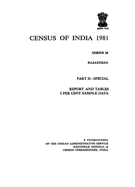 Report and Tables 5 Per Cent Sample Data, Part II-Special, Rajasthan - Census 1981