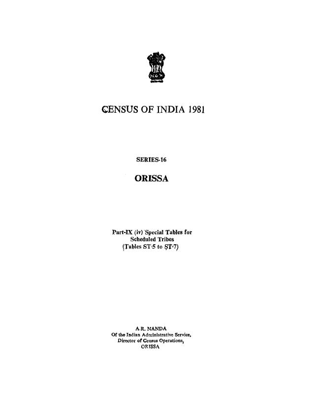 Special Tables for Scheduled Tribes, Part-IX (iv), Series-16, Orissa - Census 1981