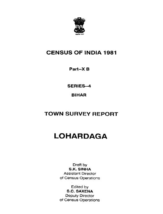 Town Survey Report, Part-X B, Series-4, Bihar - Census 1981