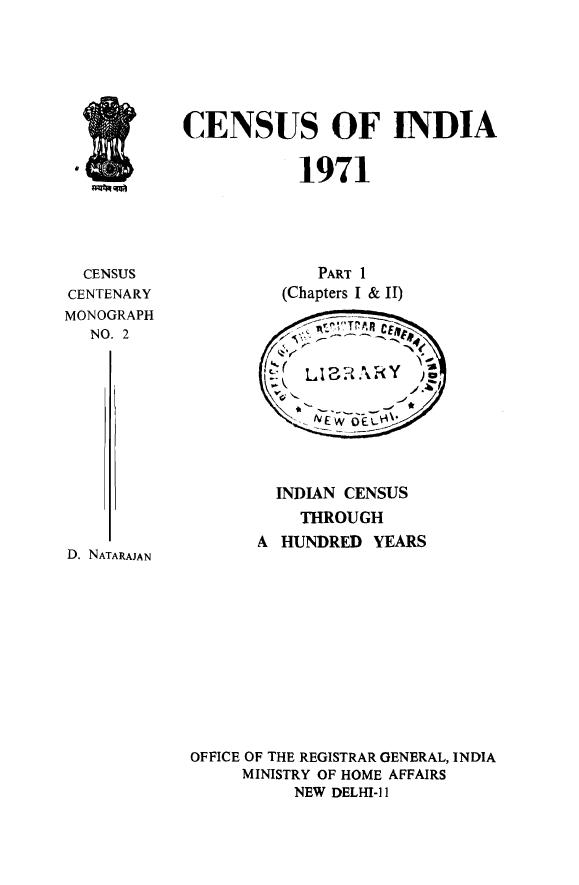 Indian Census Through A Hundred Years, Part -1 (Chapters I & II) - Census 1971