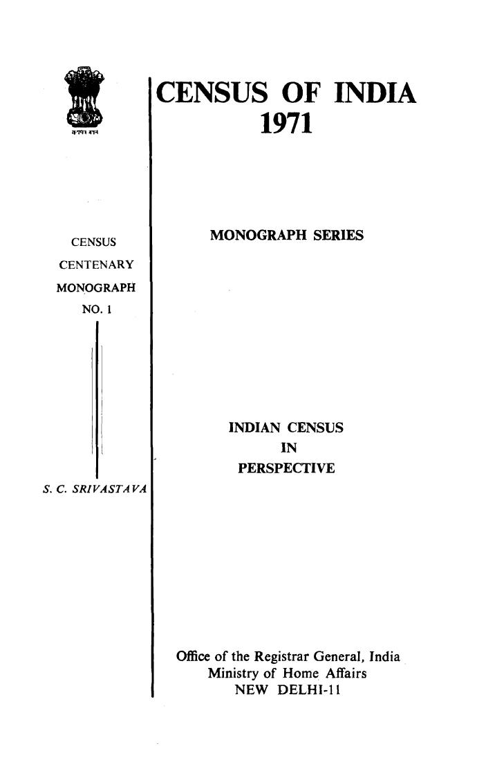 India Census In Perspective - Census 1971