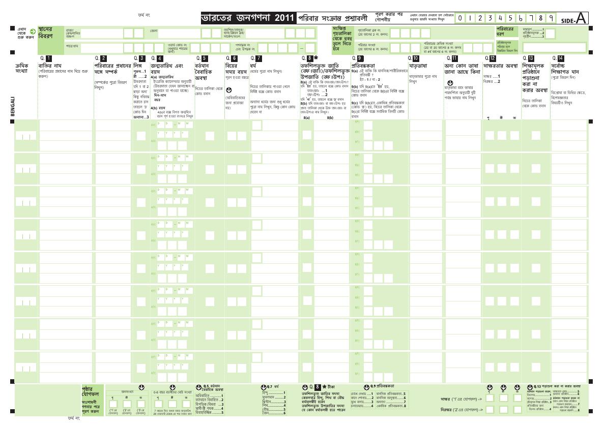 Census of India 2011 - Household Schedule - Bengali