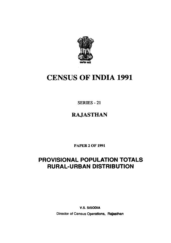 Provisional Population Totals Rural-Urban Distribution, Series-21 - Census 1991