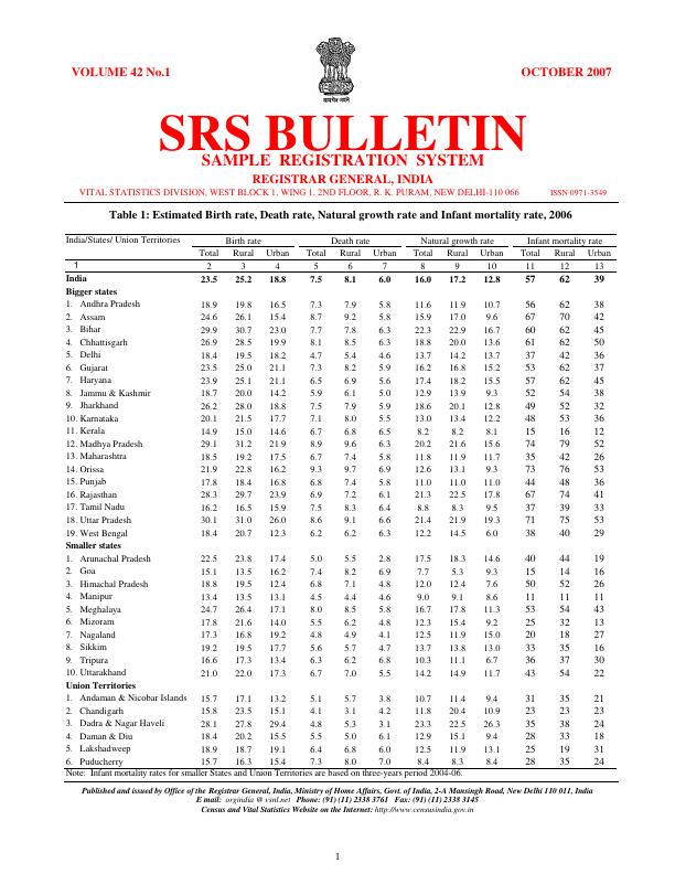 SAMPLE REGISTRATION SYSTEM (SRS)-BULLETIN 2006 VOLUME 42-I