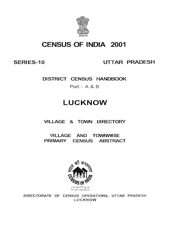 Census of India 2001 - Series 10 - Uttar Pradesh - District Census Handbook, Part A & B - Lucknow