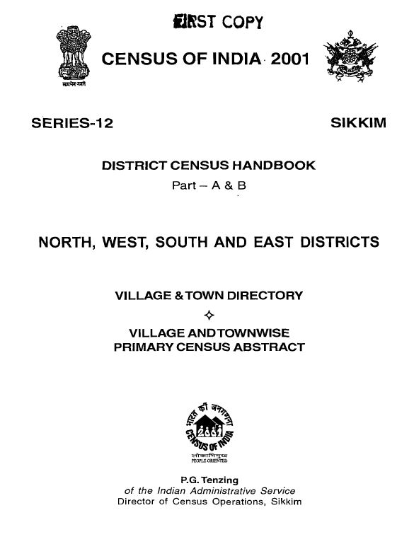 Census of India 2001 - Series 12 - District Census Handbook, Part A & B - Sikkim