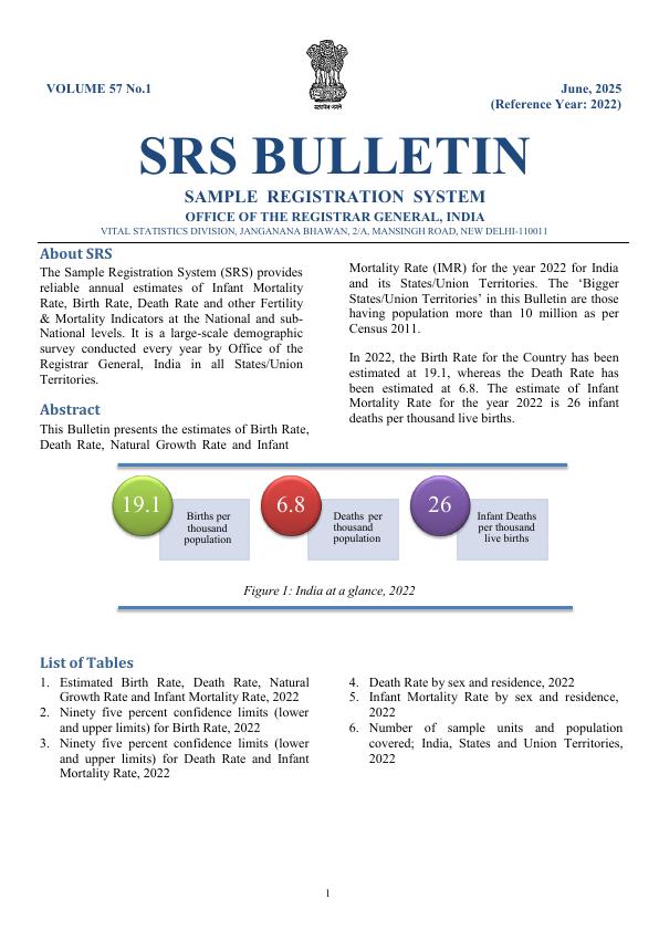 SAMPLE REGISTRATION SYSTEM (SRS)-BULLETIN 2022 VOLUME 57-I