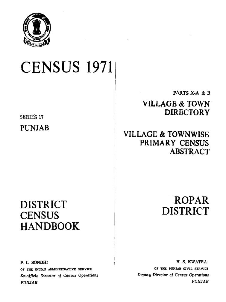 District Census Handbook, Ropar , Part X-A & B, Series-17, Punjab - Census 1971
