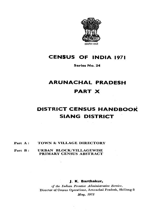 District Census Handbook Siang District, Part X, A & B, Series-24, Arunachal Pradesh - Census 1971