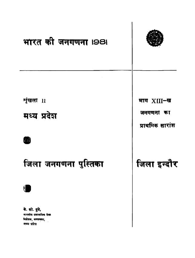 District Census Handbook, Indore, Part XIII-B, Series-11 - Census 1981