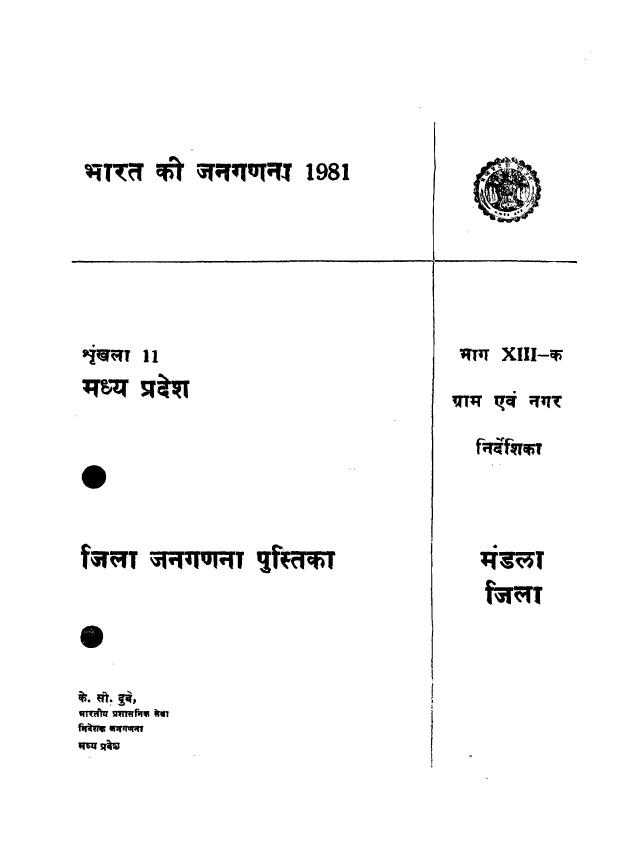 District Census Handbook, Mandla, Part XIII-A, Series-11 - Census 1981