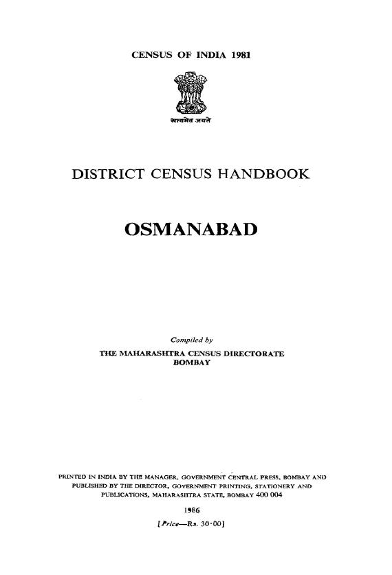 District Census Handbook, Osmanabad - Census 1981