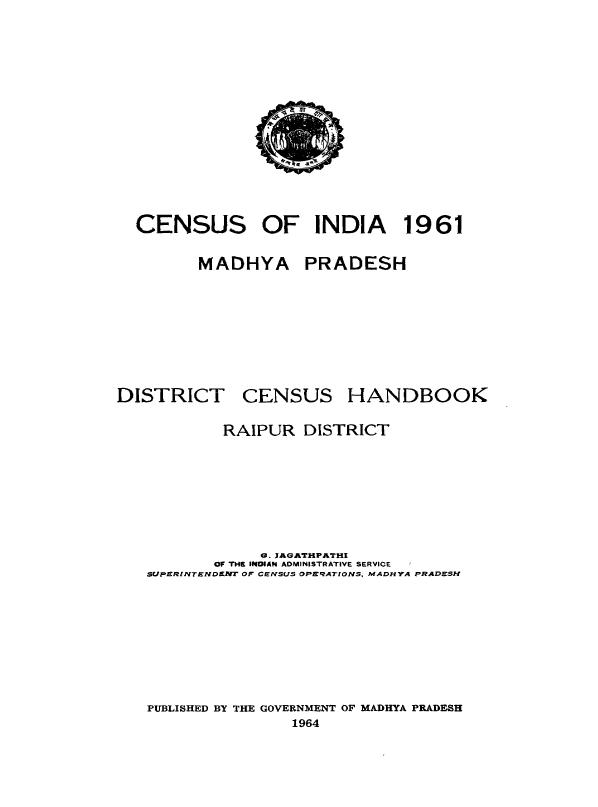District Census Handbook, Raipur - Census 1961